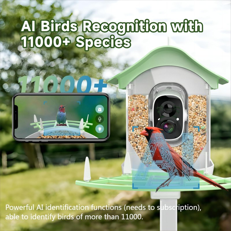 - 【Advanced AI Identify 10000+ Birds】 - Through advanced computational methods, the Uidducpu Smart Bird Feeder with Camera recognizes 10000+ bird species. Whether you are a novice or a birdwatching enthusiast, it will help you better understand the birds in nature. Our smart bird feeder offers lifetime free rolling past 3 days 0.5GB of cloud storage, also supports SD card up to 128GB, if you want to use the AI recognition feature,you will need a paid, but the first month for test and not charge.