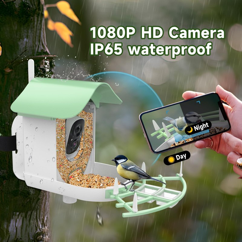 - 【1080P HD Color Night Vision Camera Birdwatching】- With 1080P High resolution, this bird feeder camera allows you to get the best shots of image and video in color even at night. You can not only see birds clearly in selfie-like perspective but also capture close-up details with magnification. What is more, with a 5dBi antenna, the camera supports more stable 2.4ghz Wi-Fi connection, you no longer have to worry about signal loss and miss the lovely moments of birds.