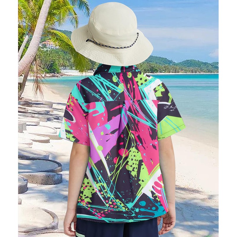 - Stylish Designs: neon, dinosaur, 80s90s, galaxy, octopus, space cat, unicorn, shark, hawaii style, beach scenery and so on, nique and realistic 3d digitalpprinting with this kids hawaiian shirt is very eye-catching