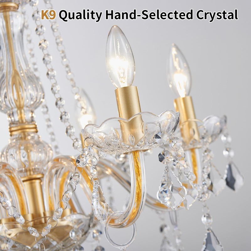Uiimeces Crystal Chandelier Light Fixture, Modern K9 Crystal Chandelier for Dining Room, Gold Ceiling Hanging Pendant Light Fixture for Living Room, Entryway, Bedroom, Hallway, Kitchen Island