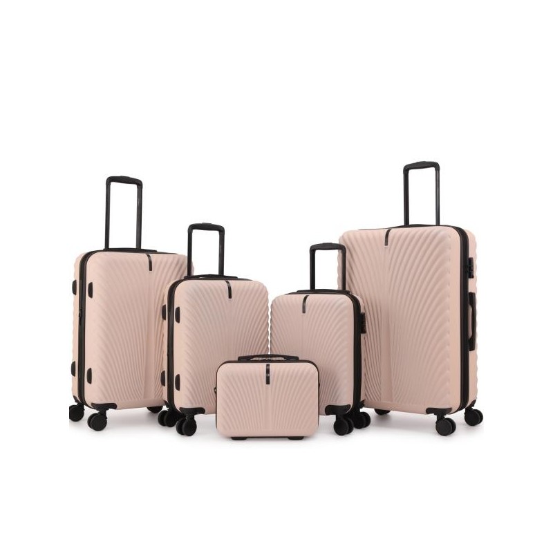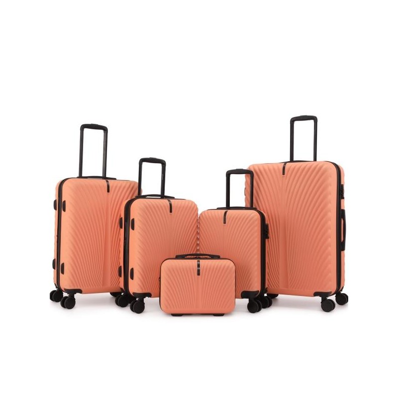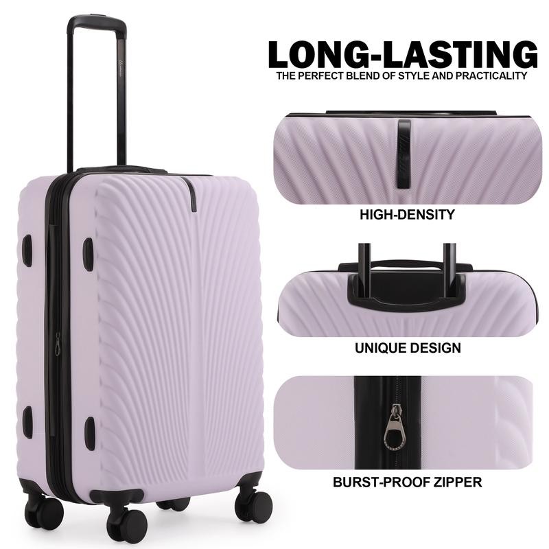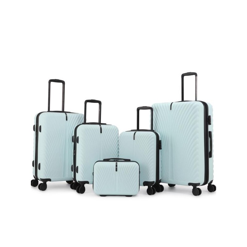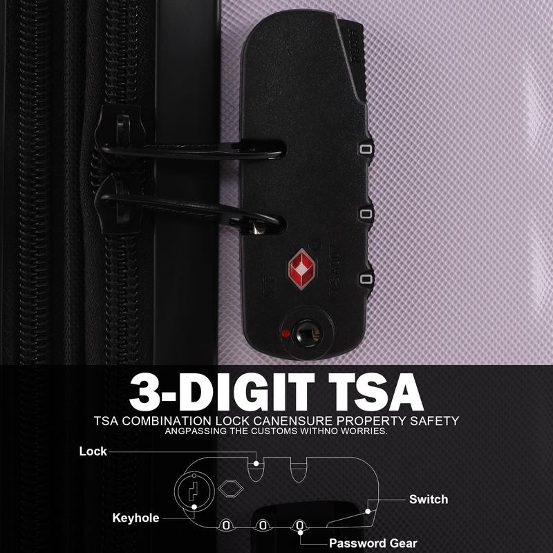The 5-piece Premium luggage set includes sizes 14", 18", 20", 24", and 28" to meet various travel needs. Whether for short trips, family vacations, or long journeys, this set has you covered.Made of more lightweight and durable 100% ABS material with diamond texture design that combines aesthetics and practicality, effectively protect your suitcase from damage.18" carry-on is the only luggage with removable wheels.14" carry-on comes with strap for easy carryErgonomically designed pull rod adjusts to multiple heights for comfortable to hold sturdy handle. Only need to push the handle slightly, and under the action of the 360° double spinner 4-wheels, you can go through anywhere in any direction effortlessly.TSA Lock that is built in on the luggage and allows only TSA agents to open and inspect bag without damaging the lock.Dimensions: (H X W X D)