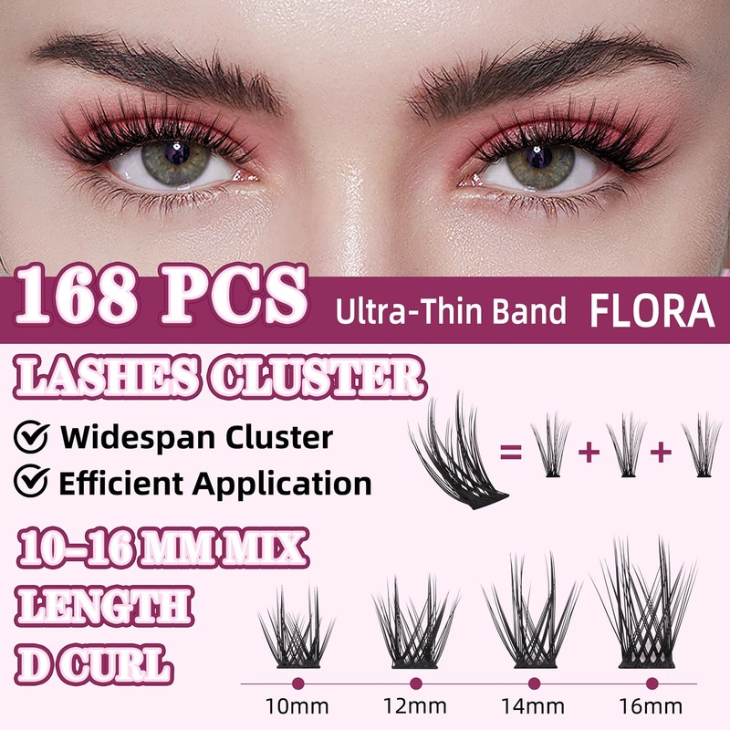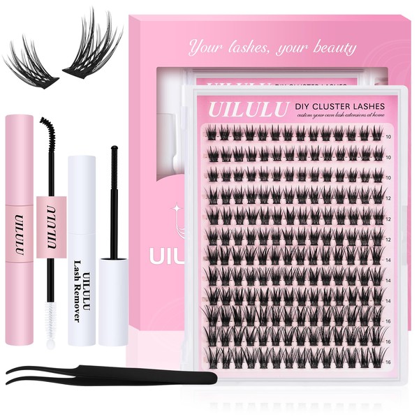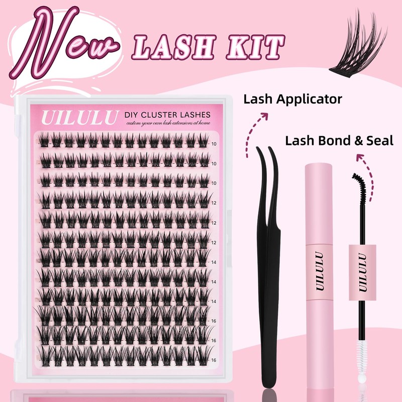 - UILULU Lash Clusters Kit - You will get 168 count clusters lashes (D curl, 0.07mm), and 1 x lash and seal, 1 x lash remover, and lash tweezers. Depending on your preferences and desired false eyelash visual effect, you can DIY at home, which is more convenient