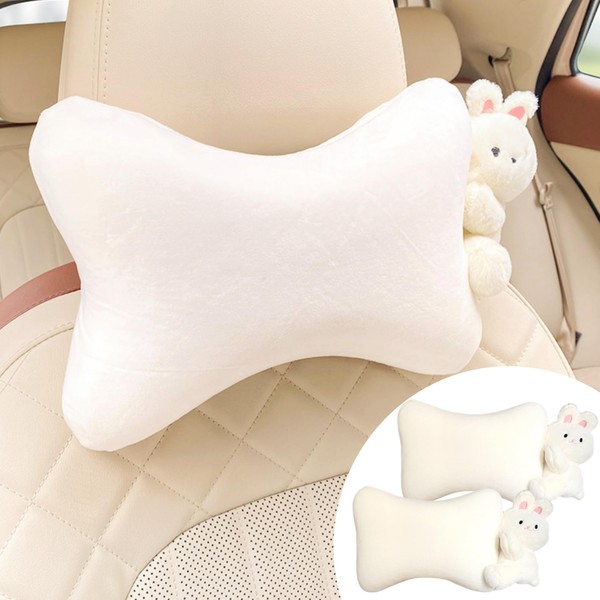 UINSUE Car Headrest Pillow 2PCS Plush Bear & Bunny Car Seat Headrest Pillow - Memory Foam Neck Support Cushions for Comfortable Driving, Easy Install & Washable (White Rabbit)