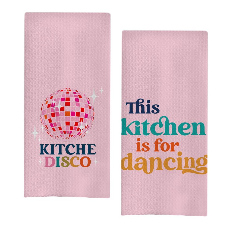 uinwk Preppy Kitchen Towels,Kitchen Disco Ball Hand Towels,This Kitchen is for Dancing Hand Towels 16x24 Inches Set of 2,Pink Kitchen Dish Towels for Kitchen Decor