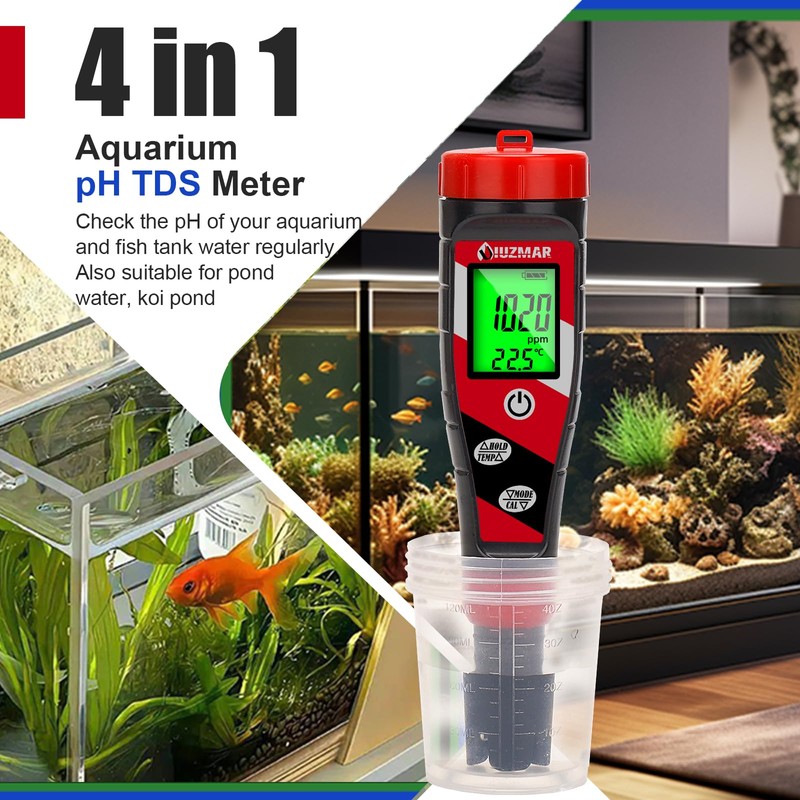 - Widely Used 4 in 1 Water Quality Tester Kit: No need to do separate test, just one UIUZMAR 4 in 1 pH pen tds tester can measure pH/tds/ec/temp. And UIUZMAR liquid pH meter for has a wide range of applications, suitable for aquarium, koi pond water, fish tank, hydroponic set up, hot tub, swimming pool, spa, homebrew beer, drinking water, bottled water, coffee, kombucha, vinegar, filtered water, well water, RO water