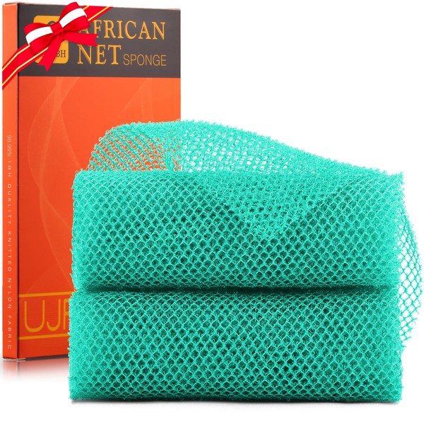 UJFQBH 2 Pieces African Bath Sponge African Net Long Net Bath Sponge Exfoliating Shower Body Scrubber Back Scrubber Skin Smoother,Great for Daily Use (Green)