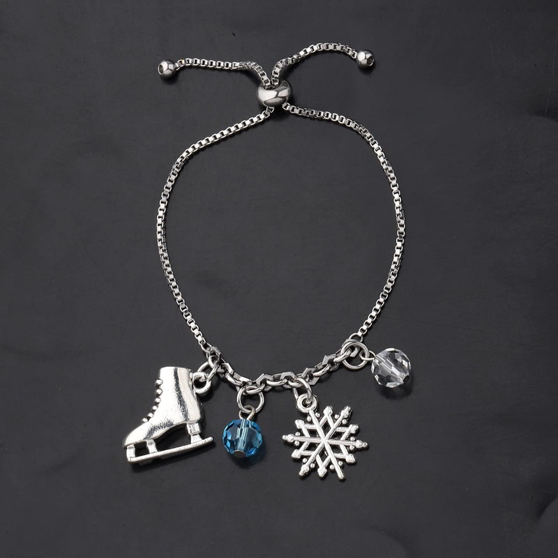 - ❤Size❤Ice Skating charm bangle is 6.0 cm in diameter ,The inner diameter is approximately 63 to 65 mm. It is fully adjustable to fit approximately a 6 inch to 8 inch wrist . Manual measuring permissible error .