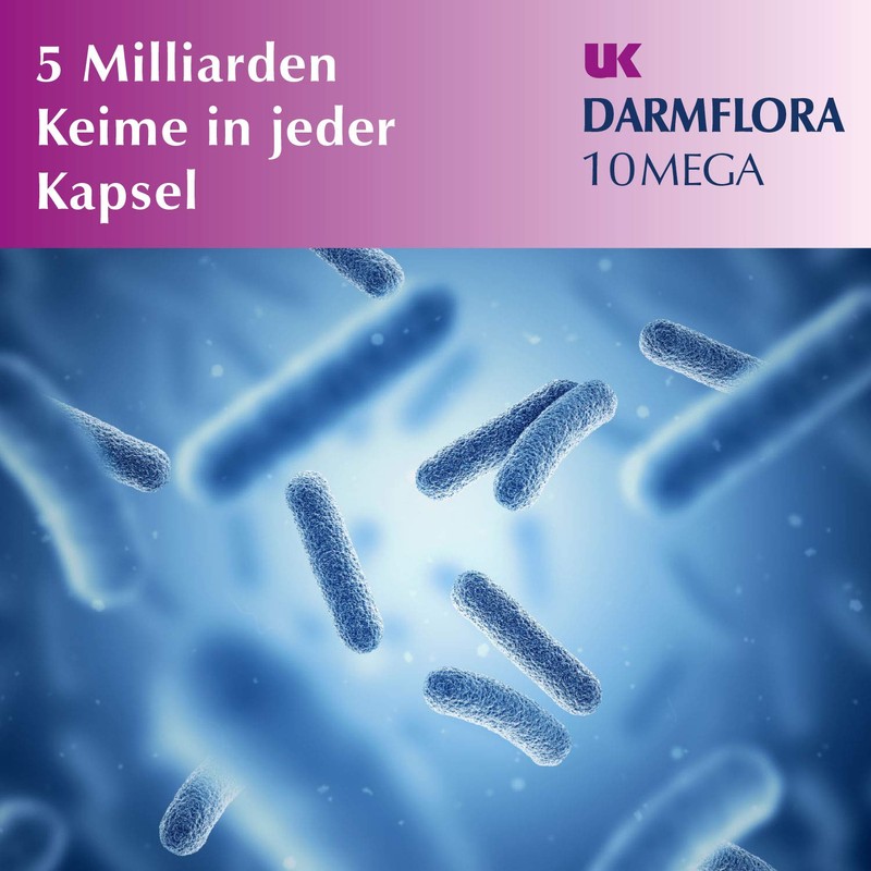 Each capsule contains 5 billion germs. The UK intestinal flora 10 mega capsules are deliberately not encapsulated in accordance with nature, so that the germs can develop in the stomach.