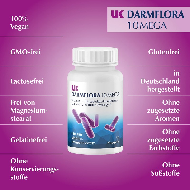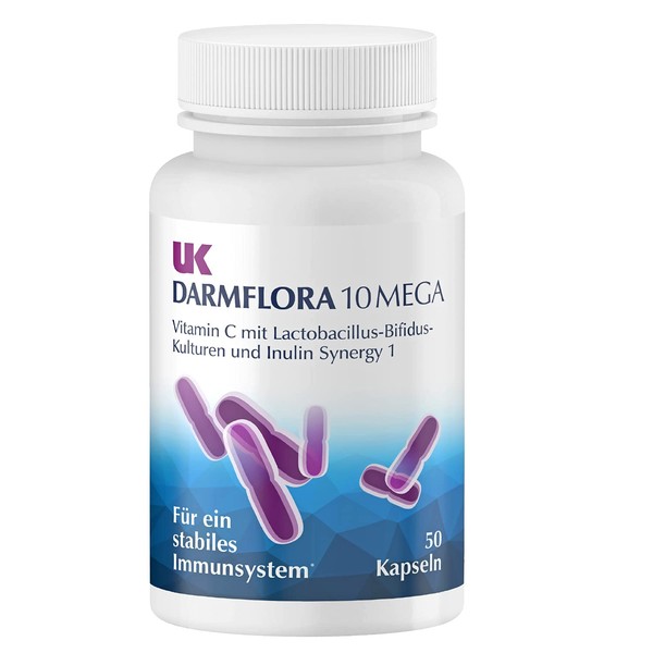 UK Darmflora 10 Mega Kapseln vegan - Hochdosierte Laktobazillus-Bifidus-Kulturen + Inulin Synergy 1 & Vitamin C