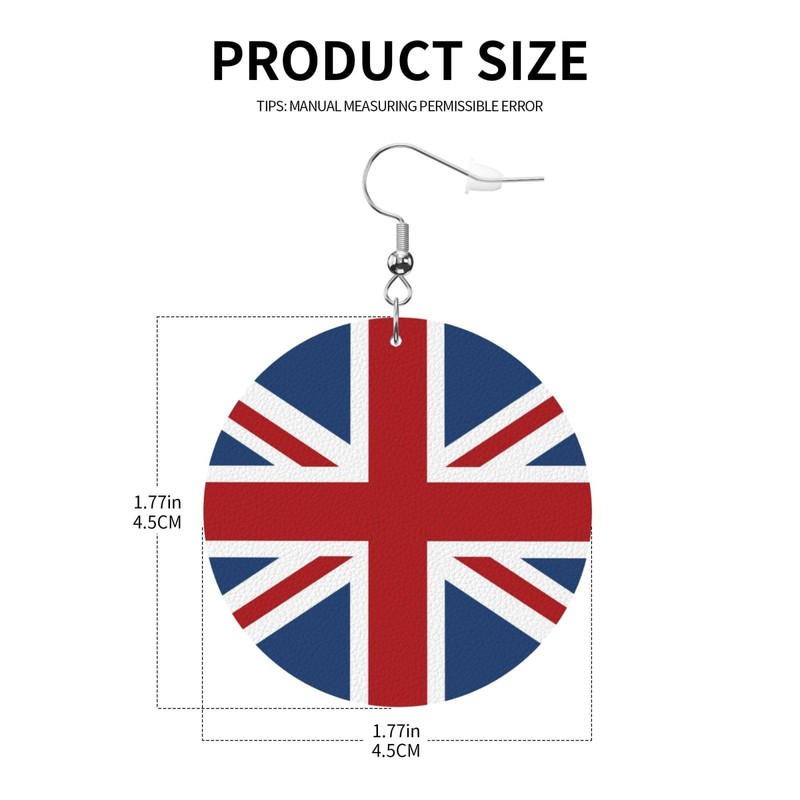 Uk Flag Faux Leather Earrings For Women Lightweight Round Dangle Earrings Gift