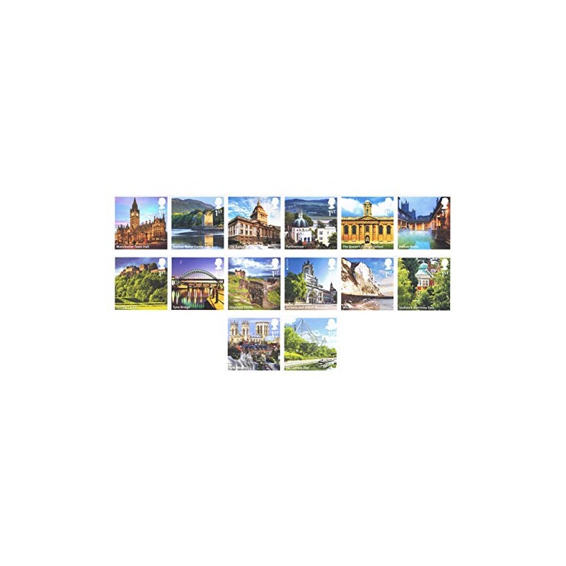 - UK Landmarks from M to Z Stamps for Postage - 14 x Royal Mail 1st Class stamps featuring Manchester Town Hall, Portmeirion, Roman Baths etc