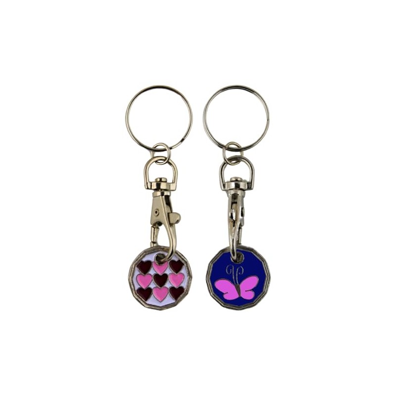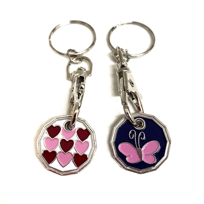 UK Phoenix Trolley Token New £1 Coin Shape 12 Sided Shopping Cart Key Ring Release Shop Locker Keychain (Hearts & Butterfly)