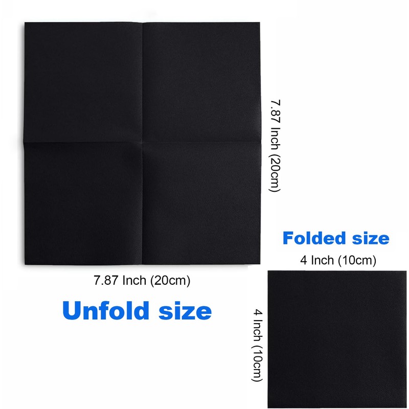 - These cloth like premium napkins are soft and thicker to provide your guests with a luxury feel. 4" x 4" Folded, 8" x 8" Unfolded 100 Count in total