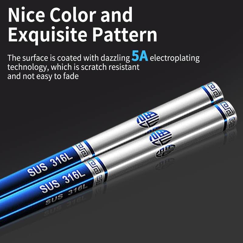 - High Quality Material: These two pairs of blue gift set chopsticks are made of 316 food grade stainless steel, which is sturdy, durable and corrosion-resistant, so you can enjoy the natural deliciousness of food with peace of mind.
