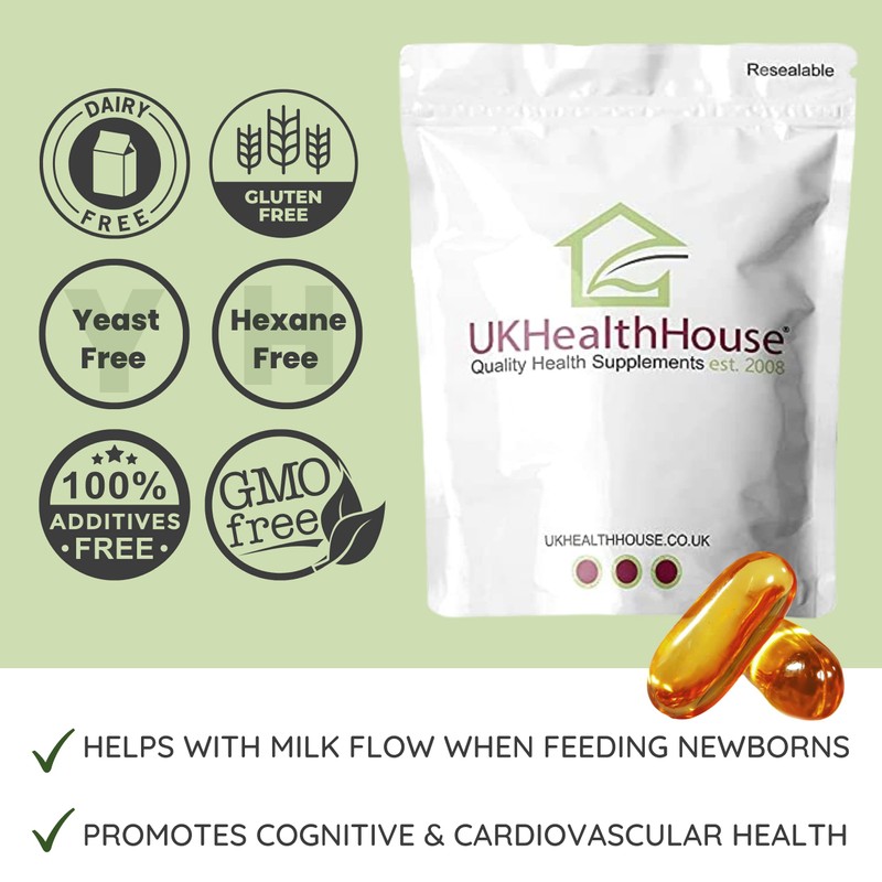 UKHealthHouse Lecithin Softgel Capsules – 1200mg x 60 Capsules – High Strength Omega 6 GLA Content – Great for New Mums & Feeding Newborns, Aids Metabolism & Women’s Health