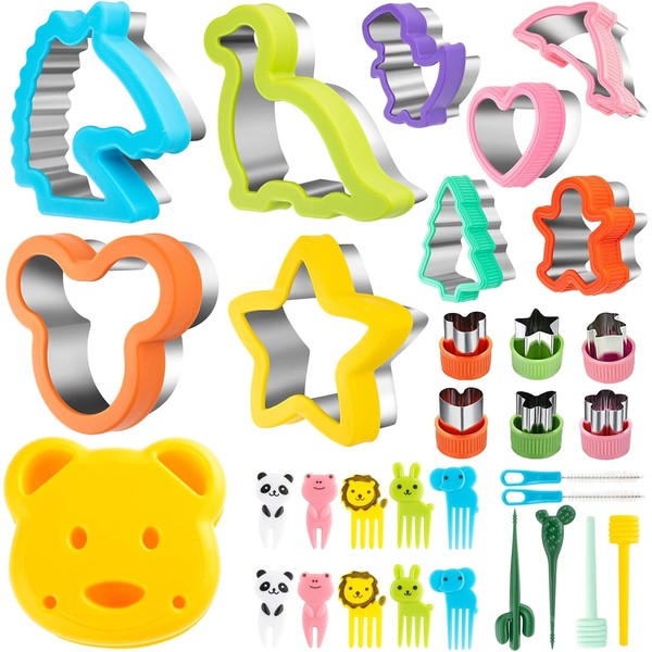 - đ°ăSandwich Cutter 32Pcsă32pcs contains: 5 large + 5 medium-sized sandwich cookie cutters, 6 small vegetable and fruit shape cookie cutters, 14 fruit forks of various shapes, and 2 cleaning brushes. Kids love them!
