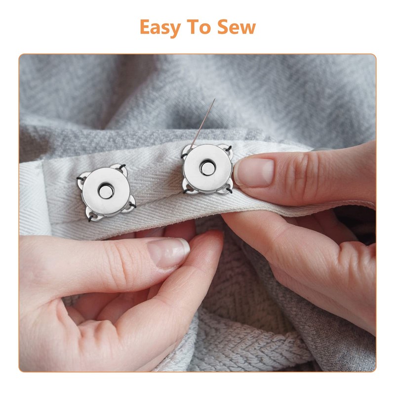 - Easy sewing: with this magnetic buckle, you need to sew it to your clothes with a needle thread and then fold it up to hold them together. This style will not damage your clothes.