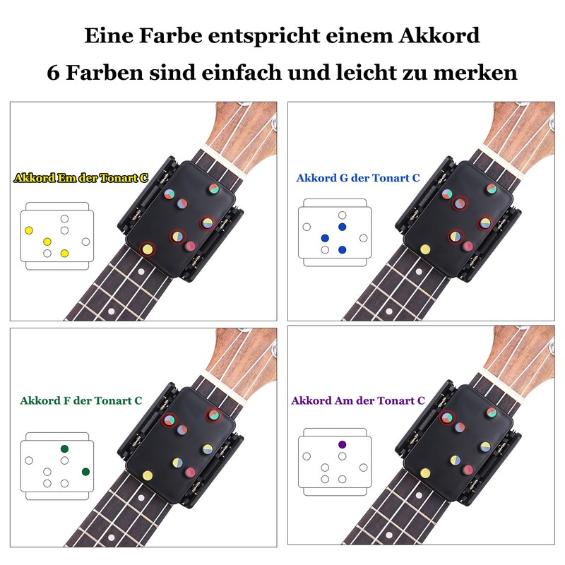 • COLORS AND ACCORD: This ukulele aid features six different bright colors, each corresponding to a specific chord. This design makes it easier to learn and memorize different chords and makes it easier for beginners to understand and master the chord structure.