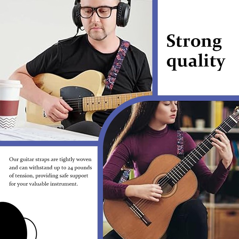 - Compatible with all guitars: The adjustable guitar strap is suitable for a variety of guitars, including acoustic, semi-acoustic and electroacoustic guitars, electric guitars, folk and bass guitars, ukuleles, banjos and mandolins.