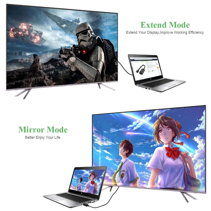 - Extended Desktop model and Mirrored Displays model are make you better entertainment experiences from a small or old computer.Suitable for playing game, enjoy home theater, having a report