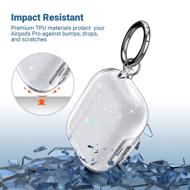 ULAK Compatible with Airpods Pro Case, Designed Clear Glitter Soft TPU Transparent Shockproof Protective Cover with Keychain [Front LED Visible] for Airpods Pro 1st Generation Case 2019