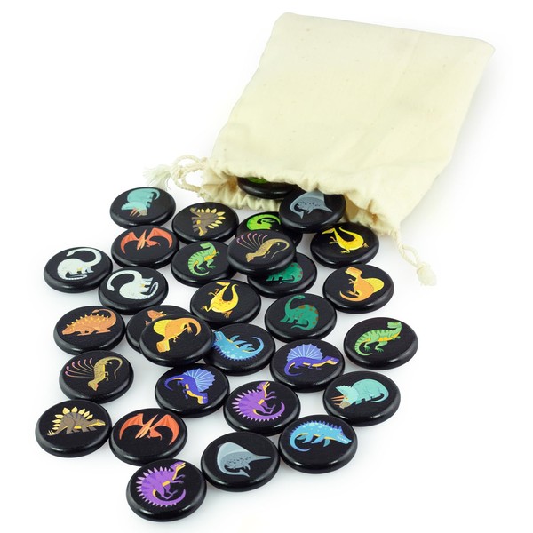- 📜 INCLUDED: 30 dinosaur wood chips 1.57 in and a linen bag to keep everything in place and to take the game with you anywhere; Combines with other designs of our wooden memory games — you can collect them all to complicate your play