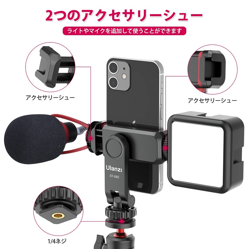 - (2 Accessory Shoes & 1/4 Screws) You can use the 2 accessory shoes with a microphone or LED light, etc., to improve the efficiency and quality of your video. 1/4" screw can be combined with tripod It can also be attached directly to the camera hot shoe, convenient to use your phone as a camera display