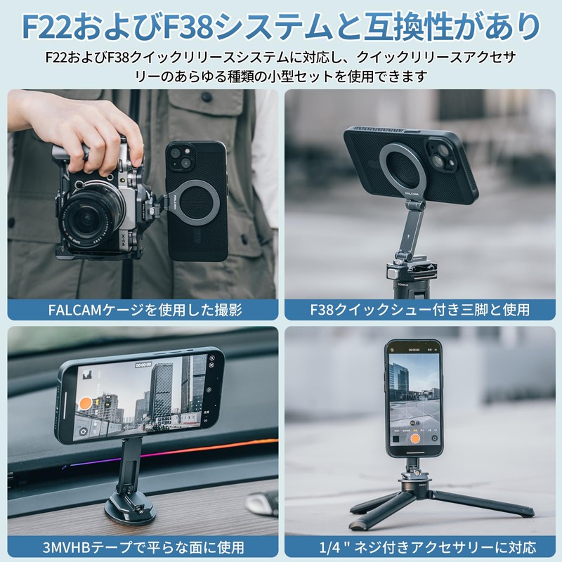 - 【Compatible with F38 and F22】 The bottom of the phone holder has F38 and F22 standard quick release tabs, which can also fit other accessories with the same specifications. You can quickly switch your smartphone to multiple devices, saving you effort and making it very convenient
