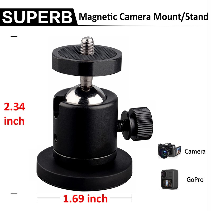 - [Multi-Use of Neodymium Magnet Base]: Universal Mini Ball Head with 1/4''-20 Male Thread Stud Perfect for kinds of Camera, Action Camera and Smart Phone
