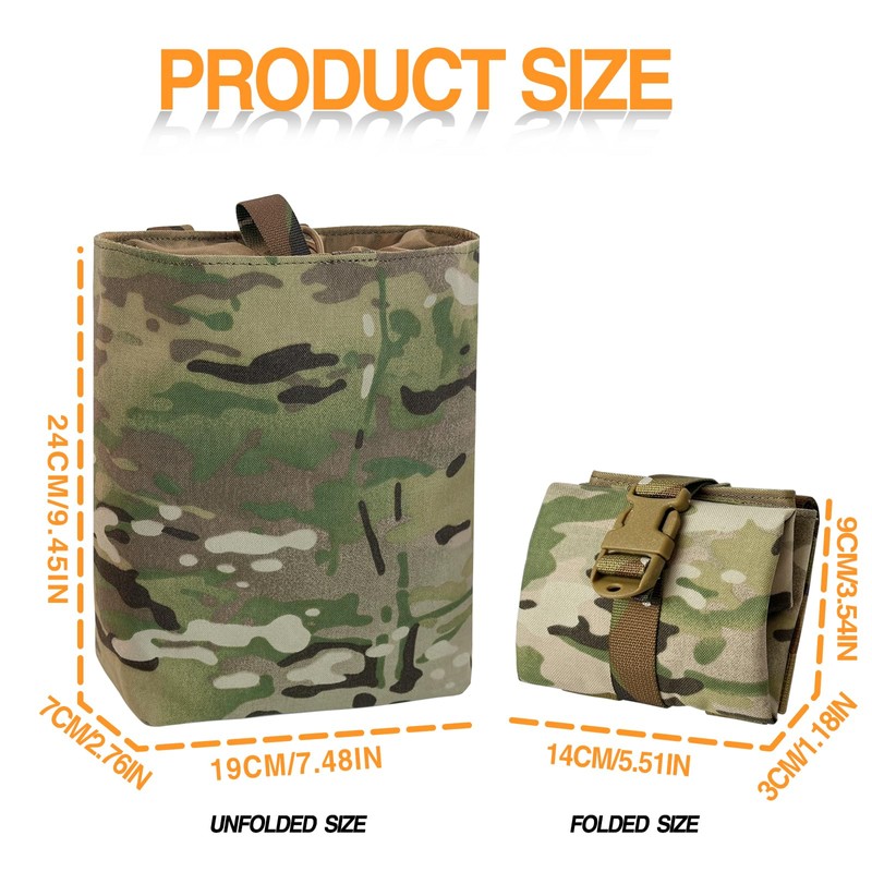 ULIONTAC Tactical Foldable Buckle Pouch - 500D Nylon Roll Up Drop Dump Pouch for Tactical Duty Belt Molle Tool Bag Space Saving (MC)