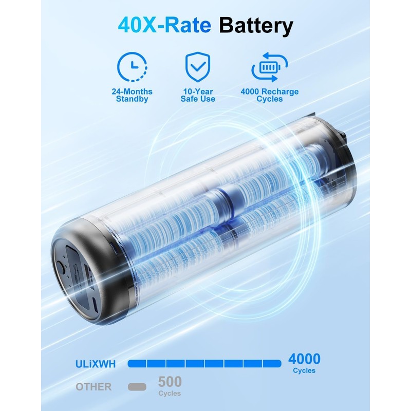 - [ START DEAD BATTERIES IN 1S ] Rated at 4000 amps, this jump starter can revive your vehicle's battery in seconds, even from a complete drain. It supports over 4000 recharge cycles and boasts a standby time of up to 24 months on a single charge. Designed to perform in extreme temperatures from -4°F to +140°F, it's a reliable companion for any situation