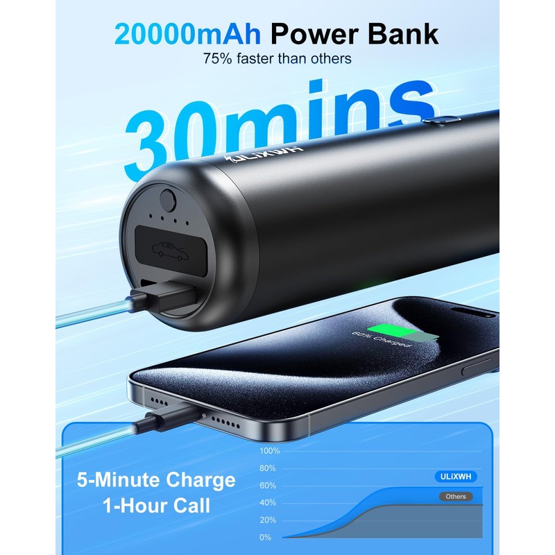 - [ A Backup Power Pack ] The K2 is not just a Jump Starter - it's a 20,000 mAh portable power bank that can charge smartphones and other USB devices. Compact, lightweight, yet powerful, this portable car jump starter provides reliable power on the go. Its portability makes it perfect for both home and travel, offering convenience wherever you are