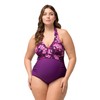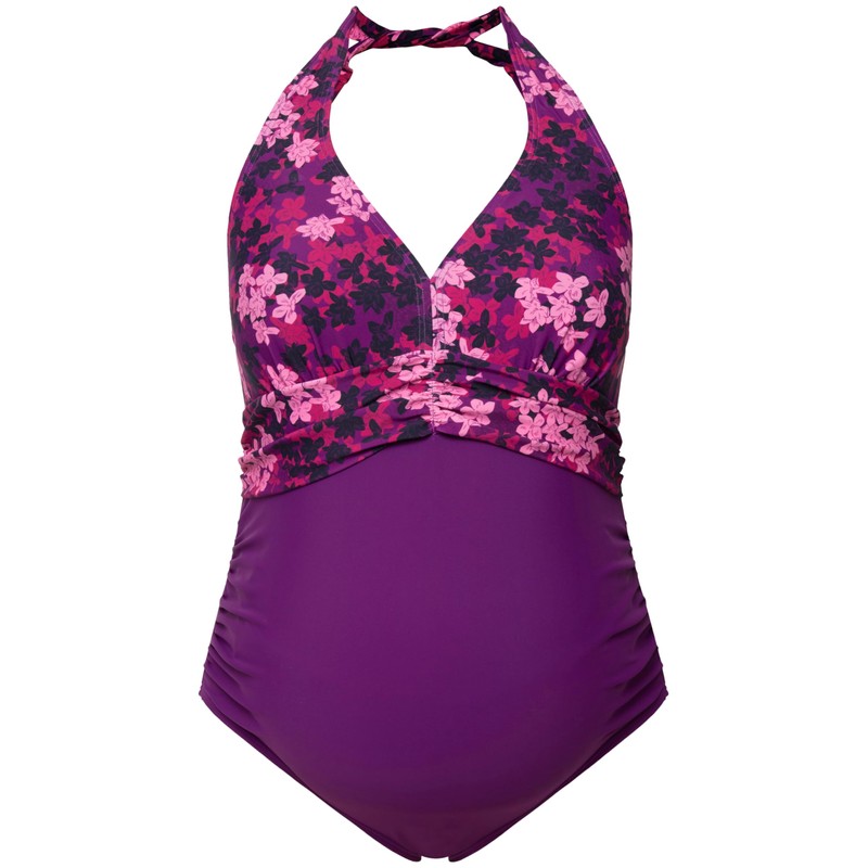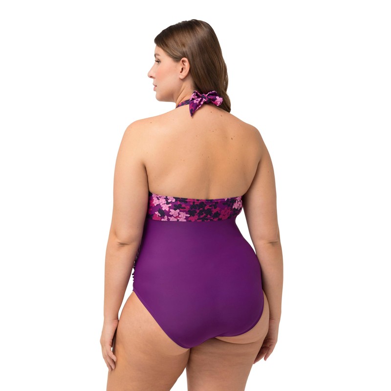 Ulla Popken Ladies Plus Size Plus Size Bellieva Swimsuit Blossom Maternity Soft Cups 822775, Blackberry