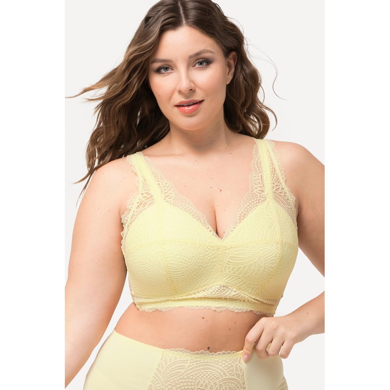 Ulla Popken Women's Plus Size Plus Size Bralette Soft Cups Lace Without Underwire Cup B-F 826986, Light yellow