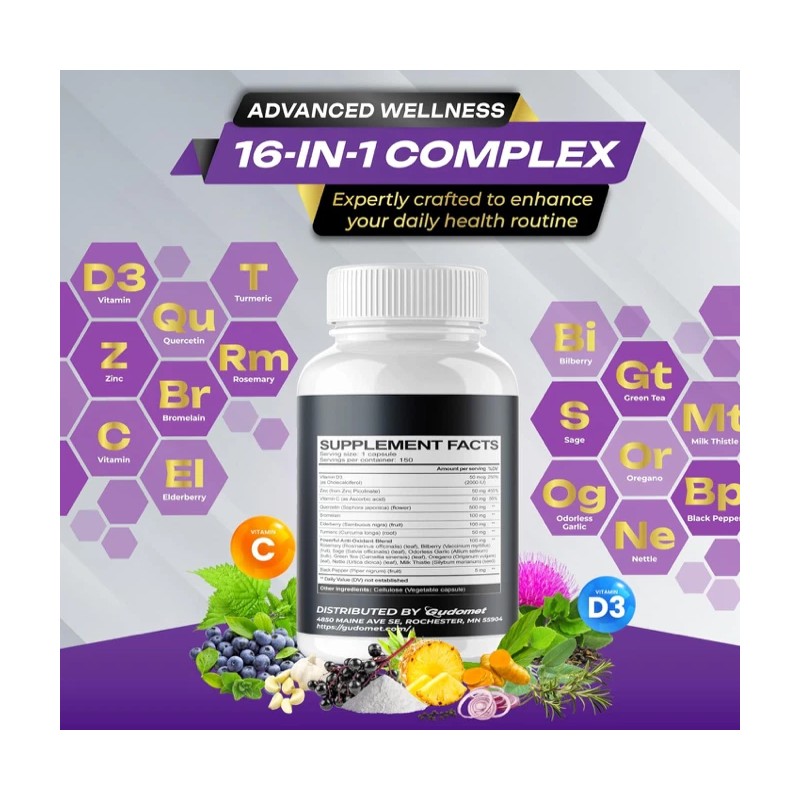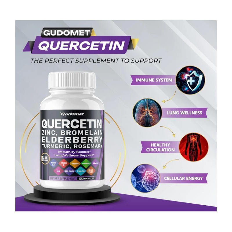 ✨ Quercetin Complex 150 Capsules 16in1 Immune Support Zinc D3 Elderberry Antioxidant