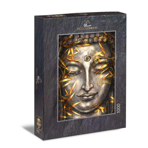 Ulmer Puzzleschmiede - Puzzle "Buddha in Silver and Gold" - Classic 1000 Piece Adult Puzzle - Balanced Puzzle Motif with Buddha Head - Clear Lines Harmonize with Golden Shades