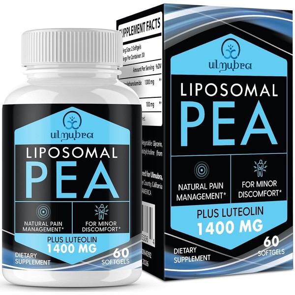 Ulmubra Liposomal Palmitoylethanolamide 1300 MG Plus Luteolin 100 MG, Superior Absorption, Micronized Pea Supplement for Discomfort Management, 60 Softgels