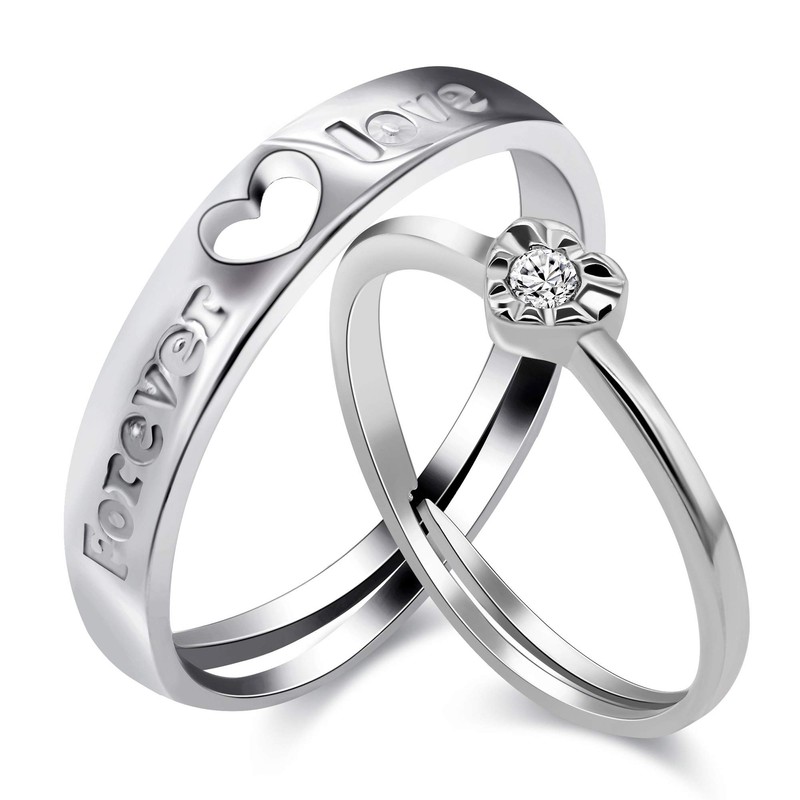 - ♥ Metal Material -- This charm couples ring set is using eco-friendly brass, white gold plated color, 3 times finish by human hand, smooth and mirror polishing on outside metal surface.