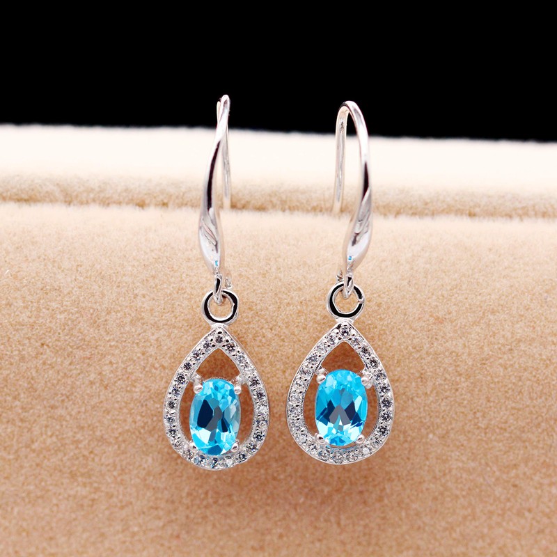 1. Piedra principal: 2 piezas de topacio azul auténtico como piedra principal en forma de lágrima.
