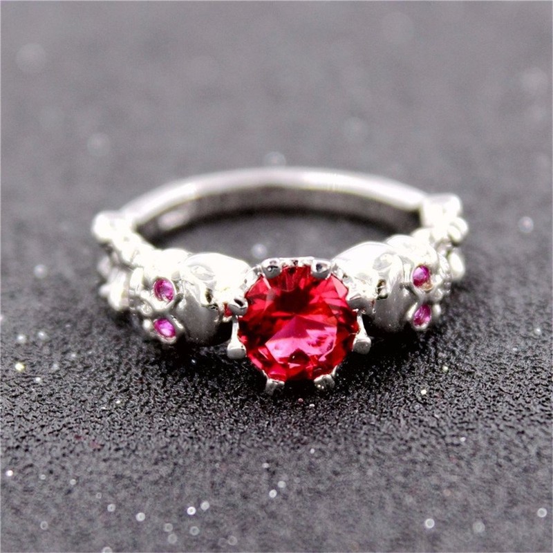 Uloveido Red Solitaire Crystal Skull Shape Gothic Statement Ring for Women Y193