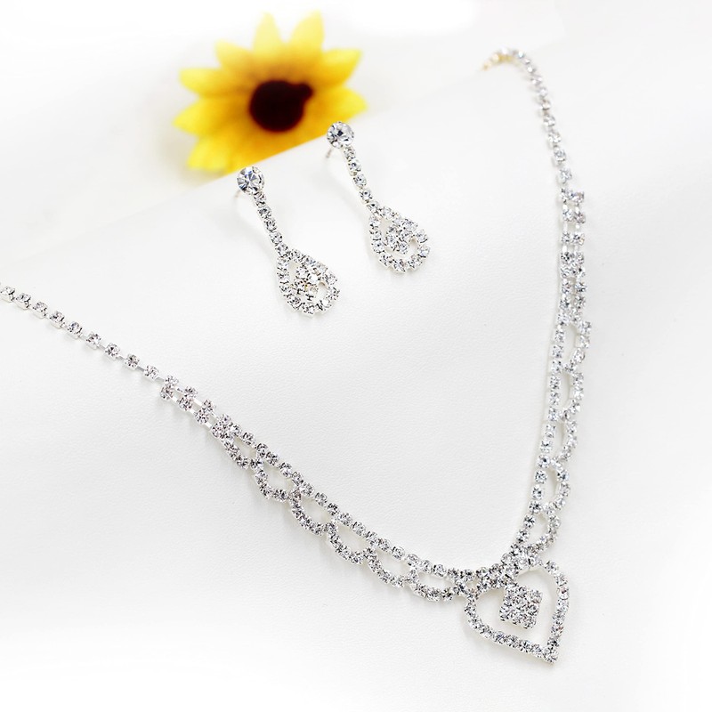 Uloveido Sparkly Costume Bridesmaid Jewelry Set for Women Crystal Necklace and Stud Dangle Drop Earrings Set, Alloy Steel, Cubic Zirconia
