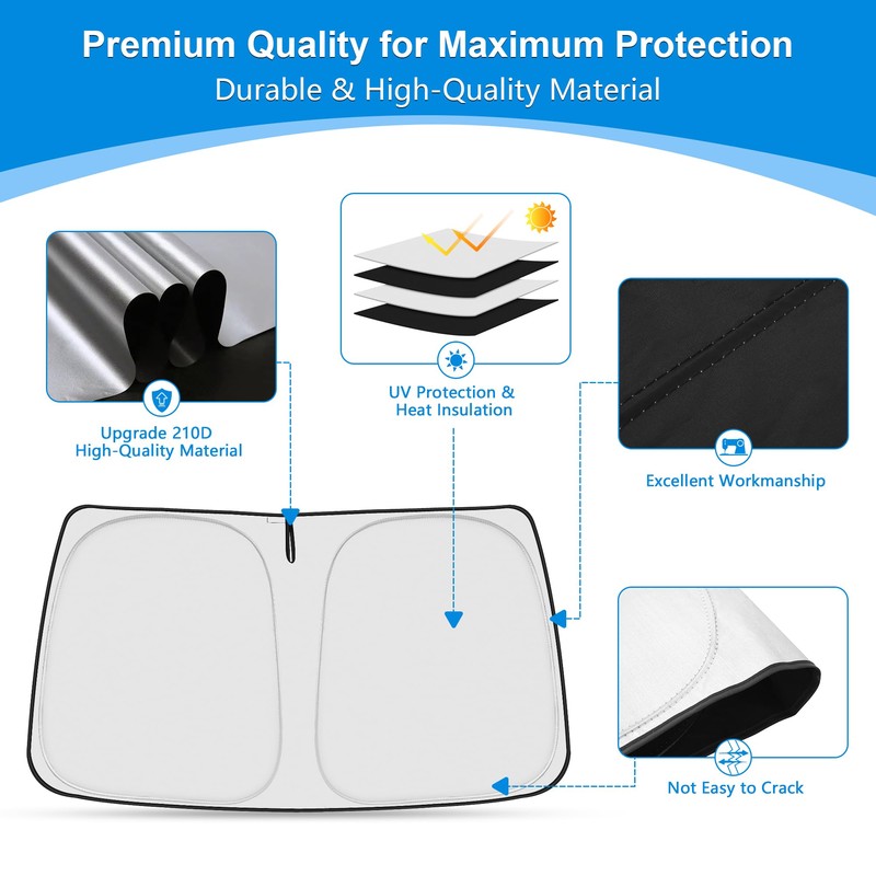 - 【Great Protection to Keep Your Car Cool】: Withstand sunlight and heat, provide both reduction of heat through the windshield and privacy. Effectively reduce the temperature inside the car, sunshine isolation, anti-UV protection and maintain your car interior temperature keep cool.