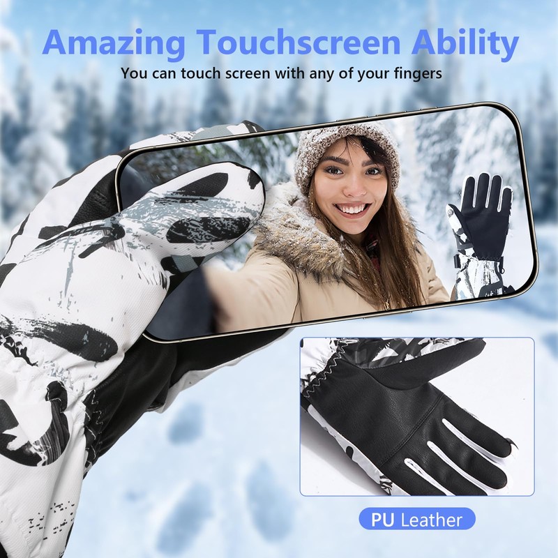 ULSTAR Ski Gloves Touchscreen Waterproof Warm Insulated Winter Gloves for Men & Women Outdoor Skiing, Snowboarding, Cycling, Driving, Fishing, Sledding Snow Gloves (M: Suit for Women, Black White)