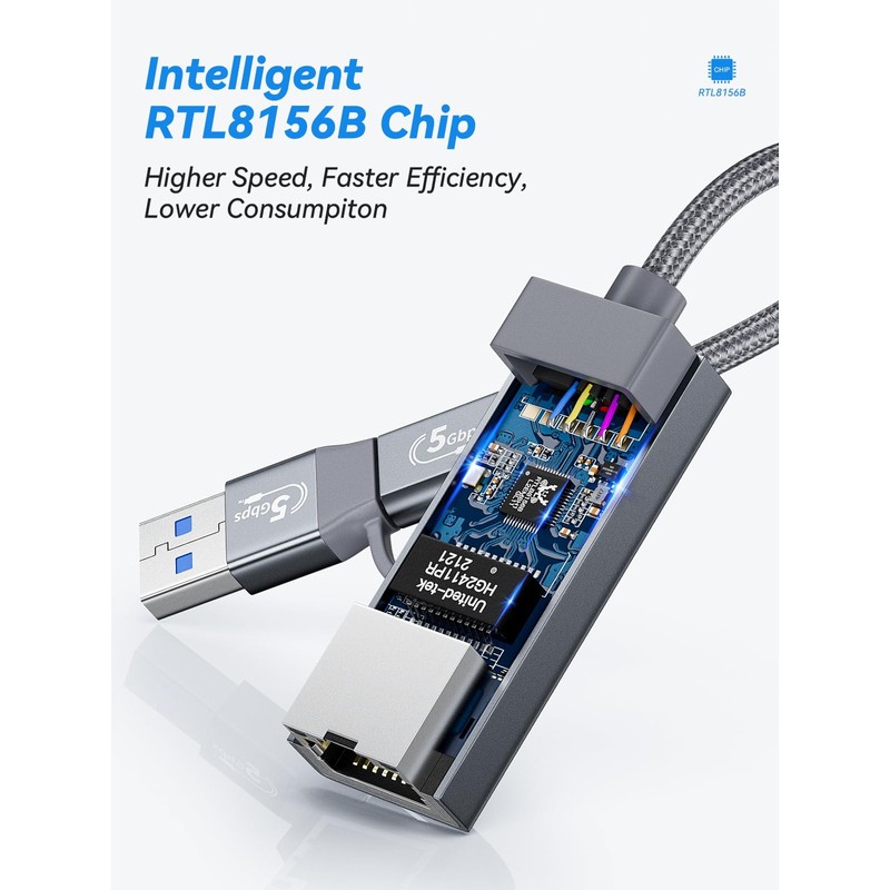 ULT-WIIQ USB 3.0 to RJ45 LAN Adapter,USB C to RJ45 2.5Gb LAN Adapter for Thunderbolt 4/3, USB4, MacOS, Windows, Linux, Steam Deck, Mac Mini, Surface, NAS, Server