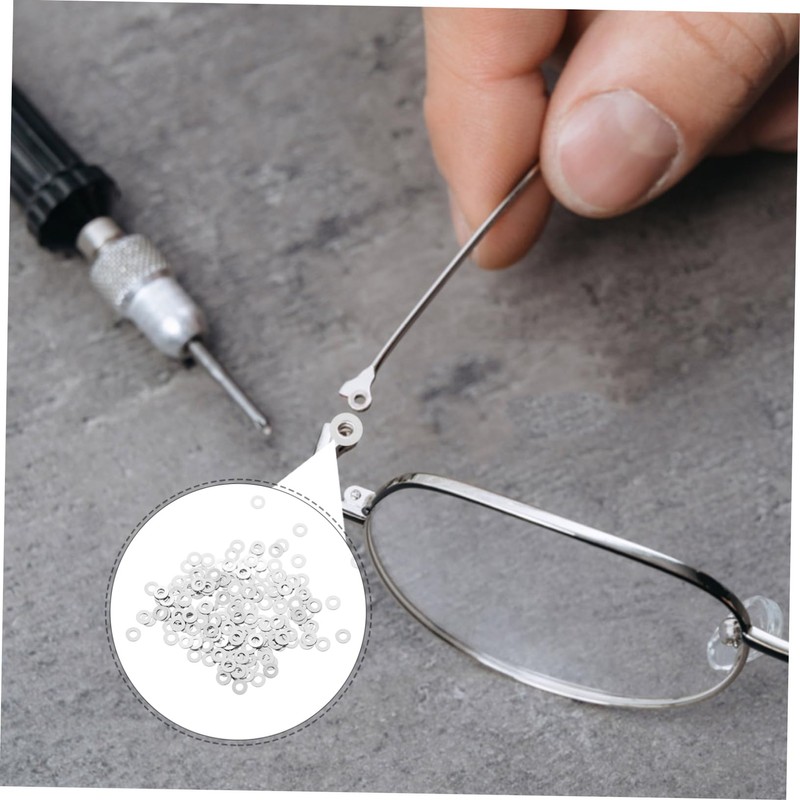 eyeglass frame hardware Keep your eyeglass frames in ideal condition with these essential repair accessories.round flat washer Easy to install and remove, these components are ideal for both opticians and DIY enthusiasts looking to maintain their eyewear.eyeglass frames screw washers The metal flat washers are designed to provide a secure and stable fit, preventing any loosening or misalignment of the lenses