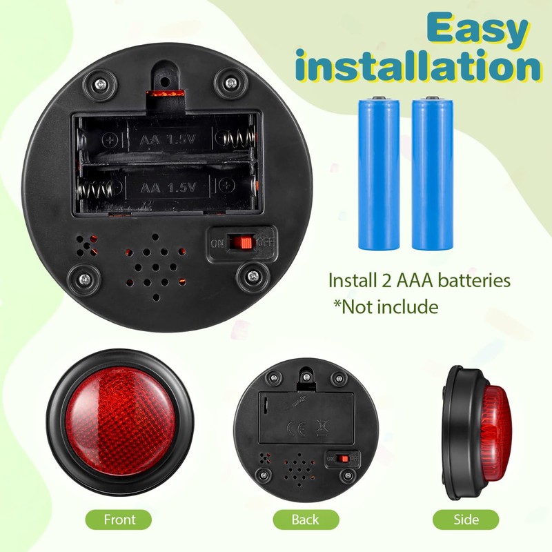 - Easy to Use: Designed with a simple push-button activation that activates light and sound effects effortlessly. Each buzzer operates on two AAA batteries (not included) and comes with pre-set, non-editable sound effects