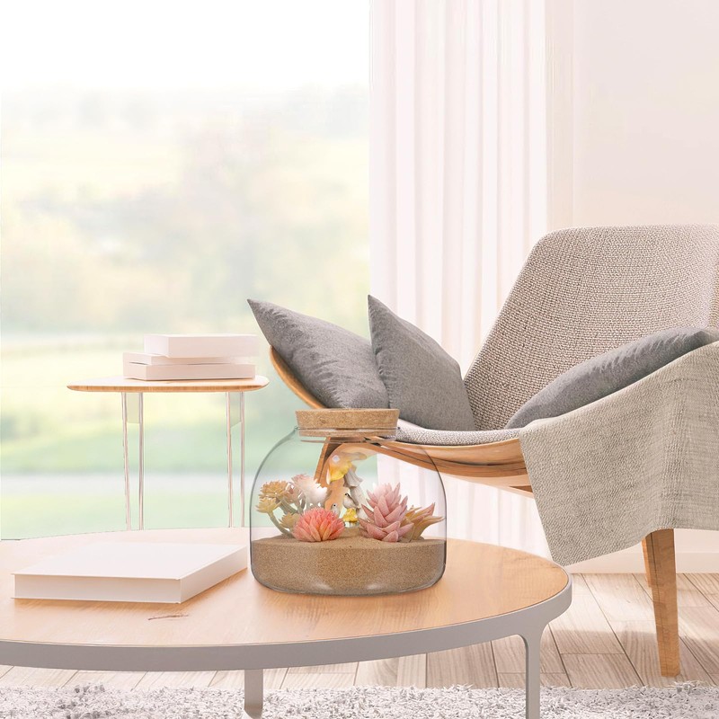 -Transparent glass bottle through which you can clearly see your micro landscapes or accents.