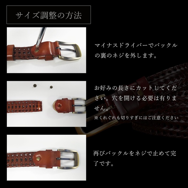 - (Selected Natural Leather from Leather Sommelier) The material of this mesh type braided belt is made of cowhide leather carefully selected by the Japanese Leather Wholesale Cooperative Association Certification. The difference between faux leather and genuine leather materials such as PU leather is especially visible with these braided type belts. Please take it and make sure that you have a strong durability and flexibility that is unique to genuine leather selected by leather sommeliers