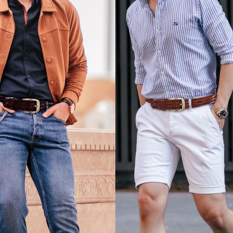 - (Braided Genuine Leather Mesh Belt) Introducing a fashionable braided genuine leather men's belt from Ulterra. This genuine leather belt is an exquisite accent for men's casual fashion or business casual styles. This item can be used for all seasons, but the braided belt can also be worn as a cool look, especially during spring and summer, so it is recommended to wear it with a shirt or top to show off your belt