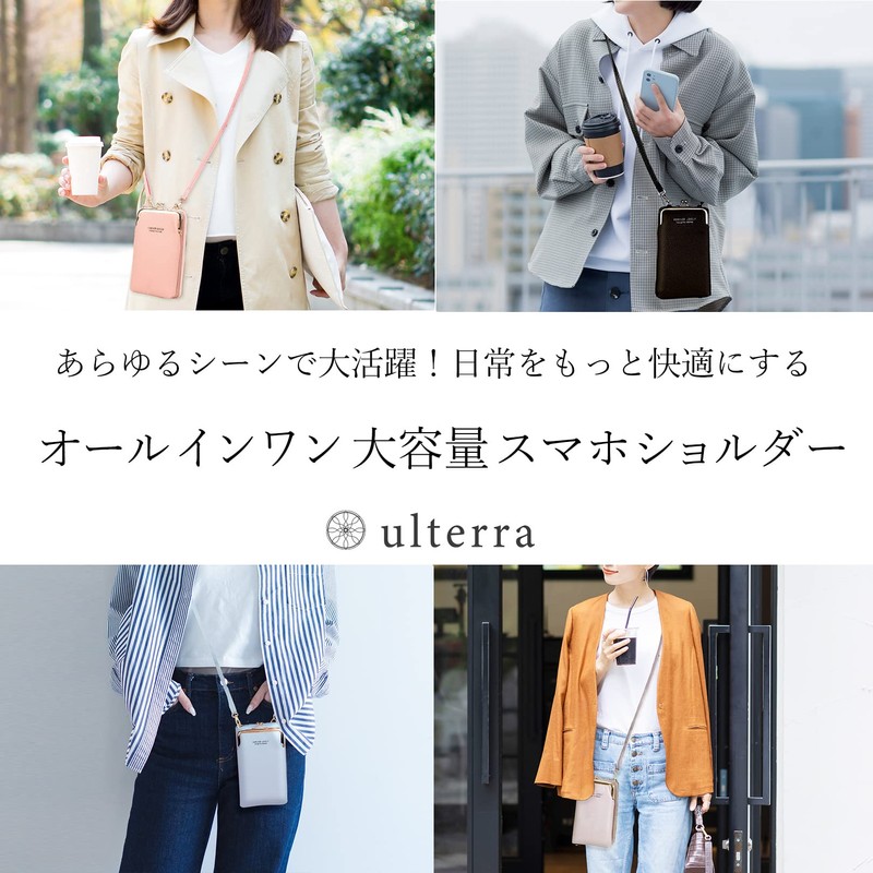 Ulterra Women's Shoulder Bag, Smartphone Shoulder, Large Capacity, Cute, Stylish, Cross-body, Pochette, Wallet, Mobile Pouch, Smartphone Pouch, gray